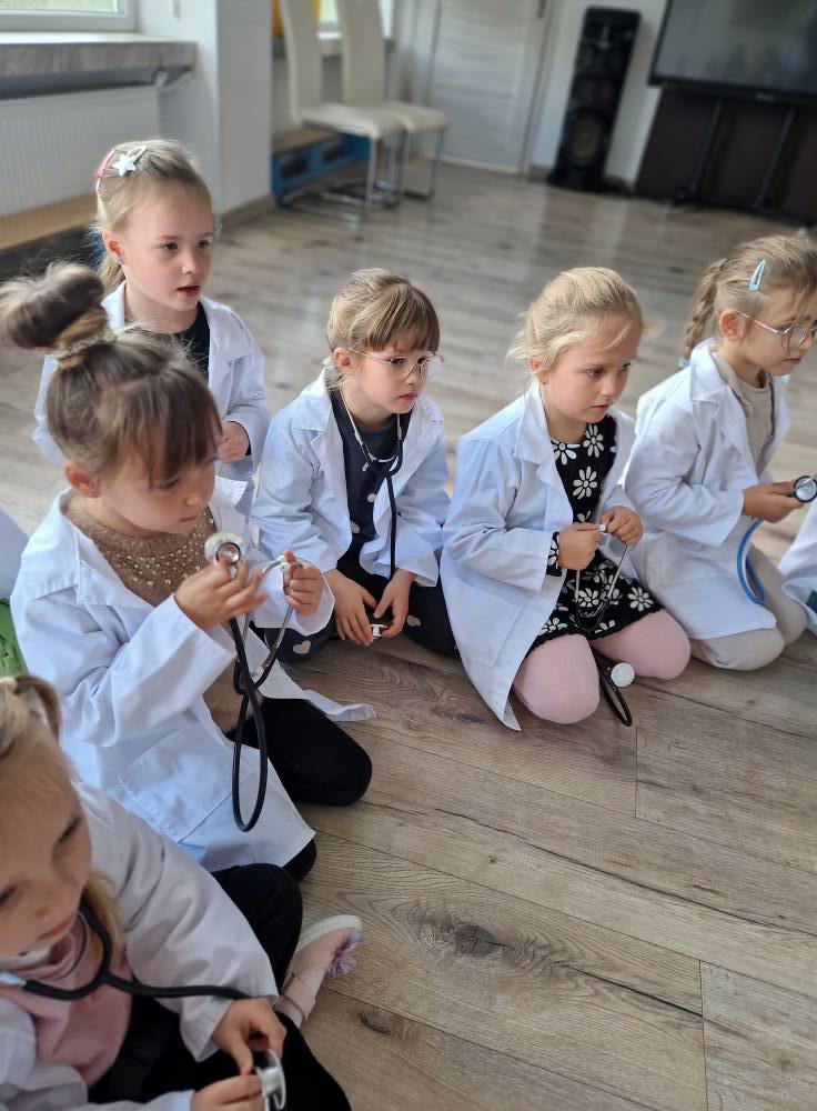 W tym tygodniu nasze Biedroneczki rozmawiały o tym, co jest zdrowe, a co nie. Przypomnieliśmy sobie piramidę zdrowego żywienia i omówiliśmy, jakie produkty do niej należą. Dzieci klasyfikowały jedzenie na zdrowe i mniej zdrowe, a także dowiedziały się, jakie witaminy – A, B, C i D – są ważne dla naszego organizmu oraz w jakich produktach można je znaleźć. Wybraliśmy się do warzywniaka, gdzie kupiliśmy świeże owoce i warzywa na Światowy Dzień Owoców i Warzyw. Z tych pyszności przygotowaliśmy owocowe galaretki i jedliśmy sezonowe owoce. 🍓🍐🍊 To jednak nie koniec atrakcji! Biedroneczki odwiedziły gabinet stomatologiczny, gdzie dowiedziały się, jak prawidłowo dbać o zęby, a także aptekę, w której poznały, jak wygląda praca farmaceuty i do czego służą leki. 🦷💊 To był tydzień pełen zdrowych nawyków, uśmiechu i ciekawych przygód! 🌟