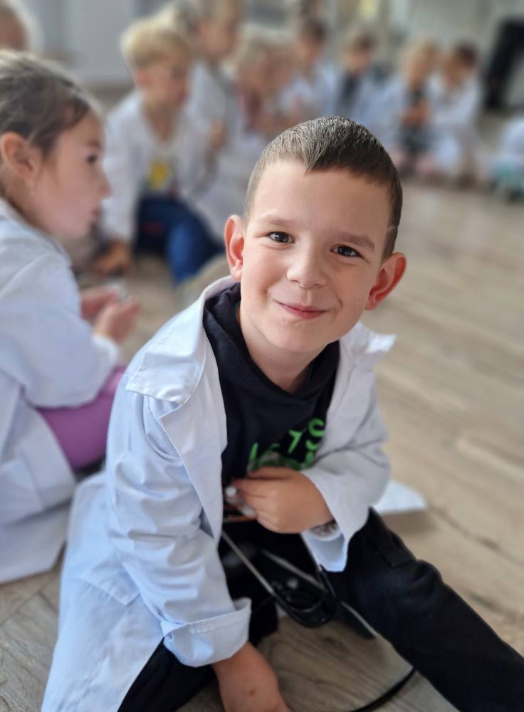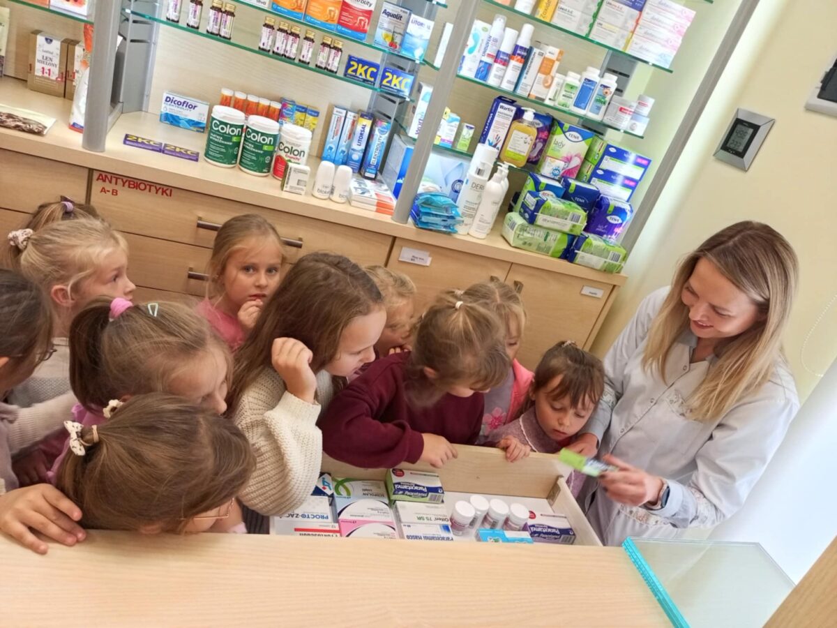 Dzieci poznały zawód farmaceuty, zobaczyły, jak wygląda apteka od środka, a nawet samodzielnie przygotowały nawilżający krem.🧴 Nie zabrakło też słodkiej zabawy – zamiast tabletek pakowaliśmy do pudełek cukierki 🍬 Serdecznie dziękujemy Pani Karolinie za zaproszenie i przygotowanie tak ciekawych zajęć ❤️
