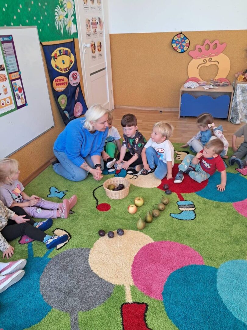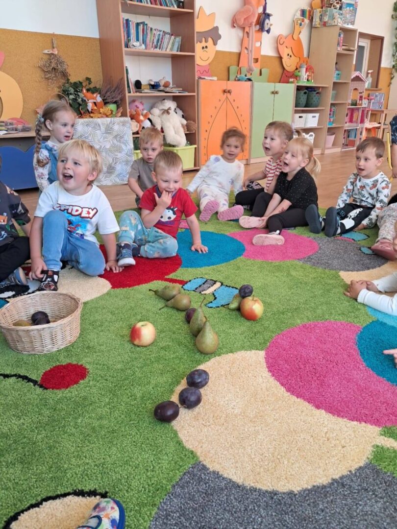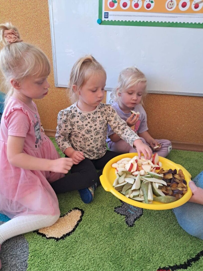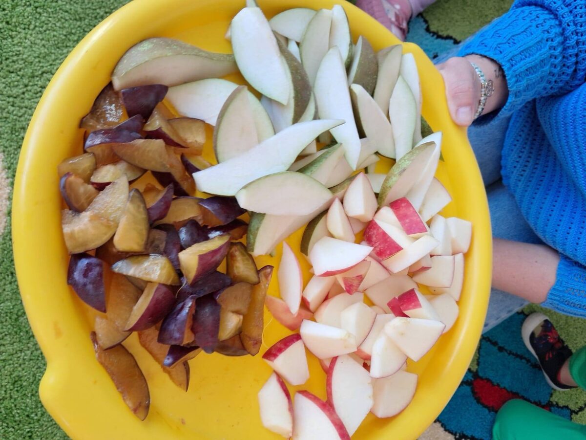 🌟 Dzieci przyniosły do przedszkola swoje ulubione owoce, które samodzielnie pokroiły i z apetytem zjadły – bo przecież jesienią witaminki są szczególnie ważne! 🍎🍐🍇