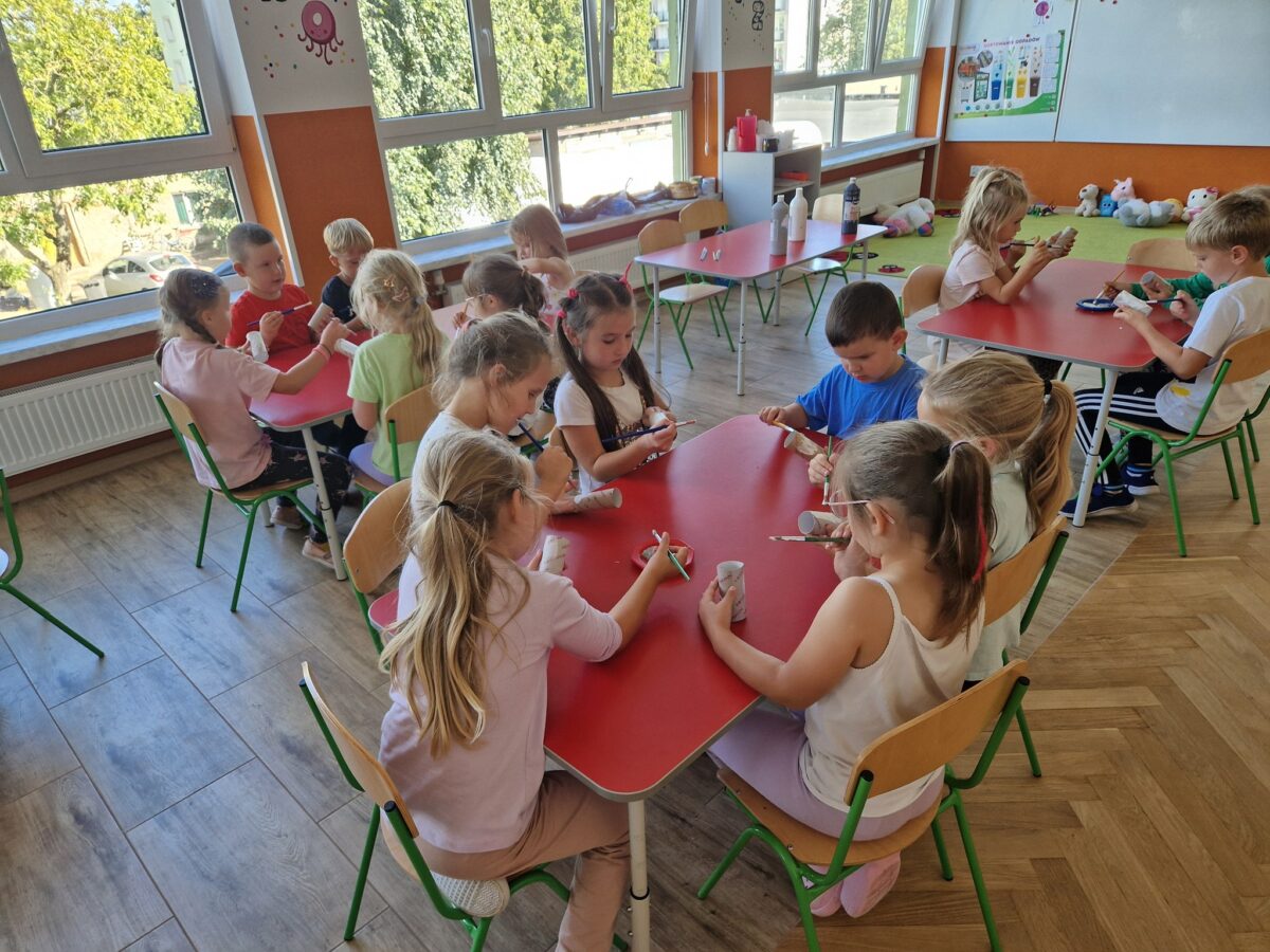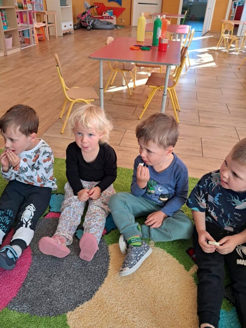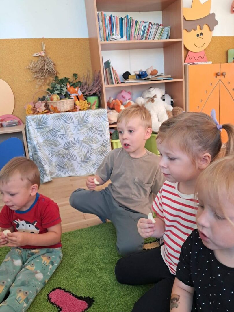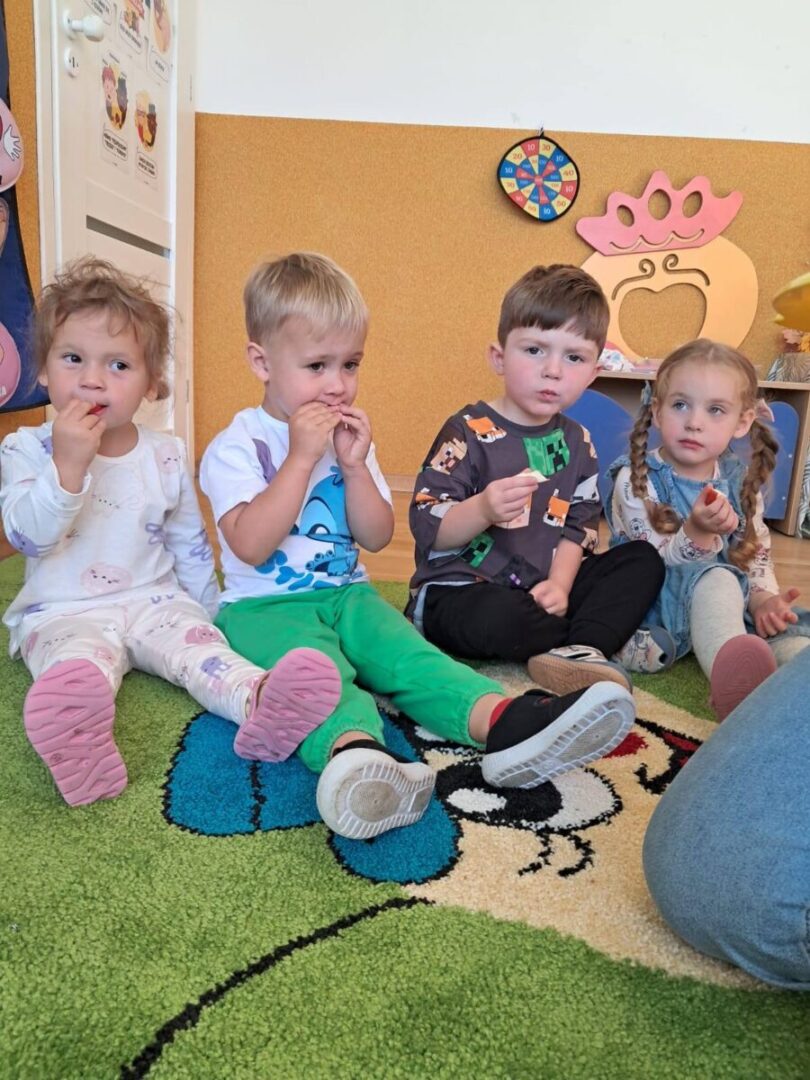 🌟 Dzieci przyniosły do przedszkola swoje ulubione owoce, które samodzielnie pokroiły i z apetytem zjadły – bo przecież jesienią witaminki są szczególnie ważne! 🍎🍐🍇