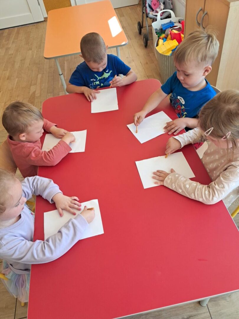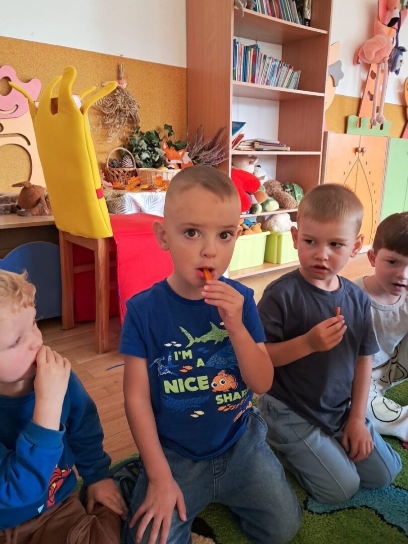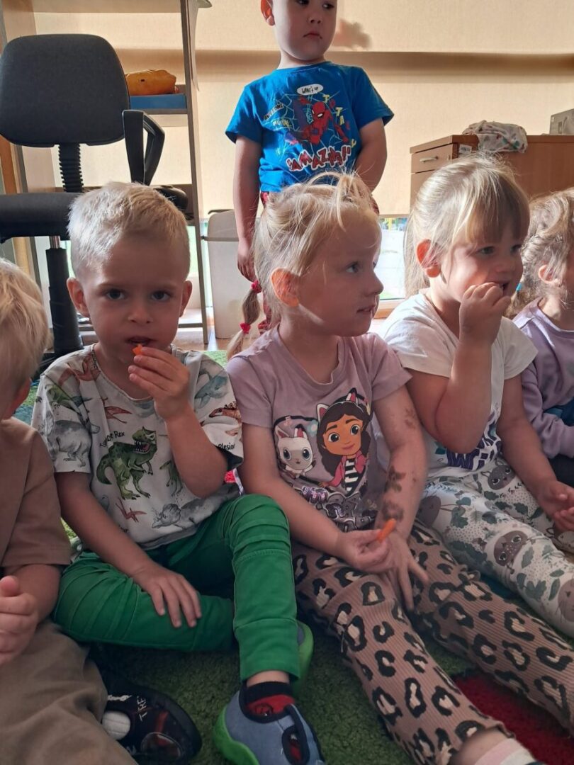 ✔️rozwijanie zdolności manualnych – tworzenie ziemniaczanych placków z sosem koperkowym, rysowanie marchewki