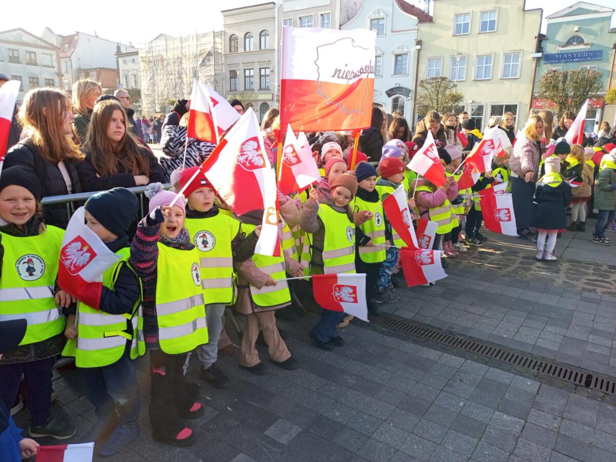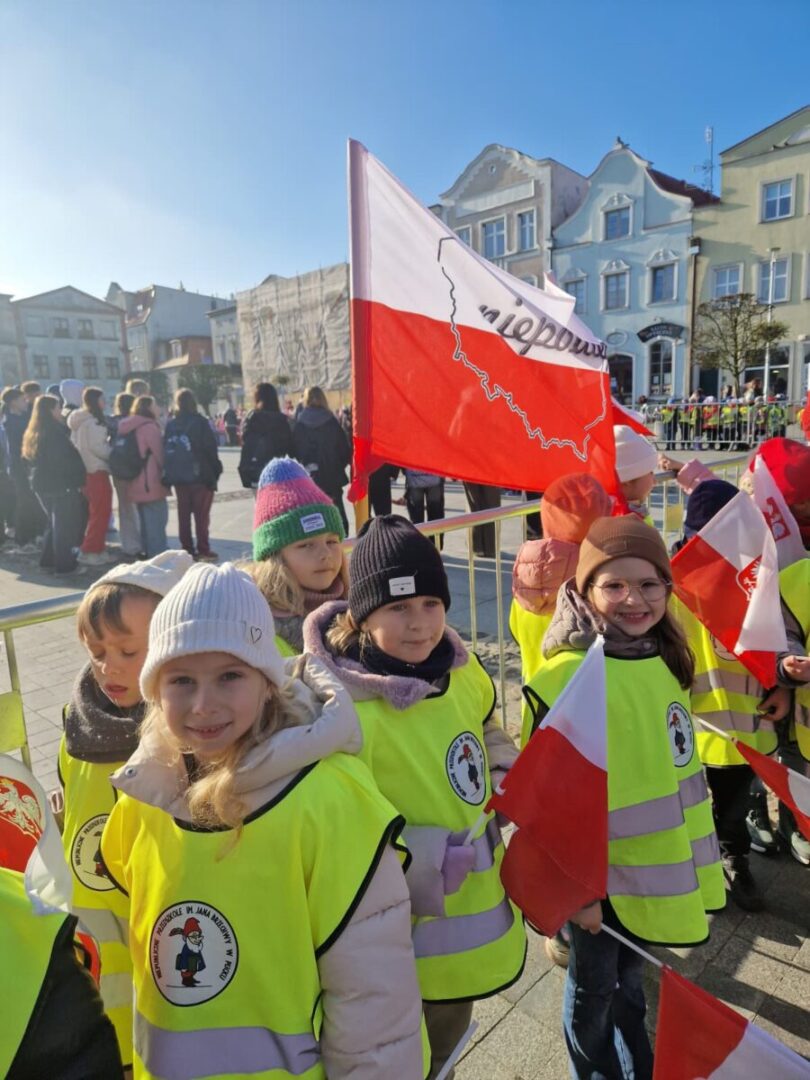 Dzieci wspólnie z innymi mieszkańcami miasta odśpiewały hymn oraz wysłuchały patriotycznych pieśni i wierszy przygotowanych przez uczniów szkół podstawowych. 🎶🇵🇱 Udział w wydarzeniu był dla najmłodszych okazją do wspólnego świętowania i kształtowania postaw patriotycznych, a także do poznania znaczenia tego ważnego dnia w historii Polski ❤️🤍