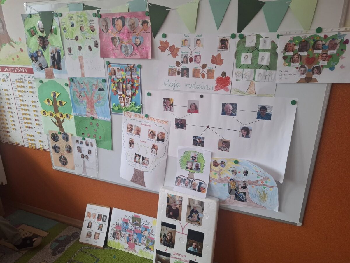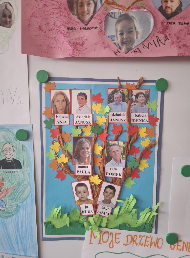 W ostatnich tygodniach realizowaliśmy dwa wyjątkowe bloki tematyczne: „Album rodzinny” oraz „Mała i duża ojczyzna”. To był czas pełen wzruszeń, odkryć i pięknych rozmów. Rozmawialiśmy o tym, czym jest dom i ciepła, kochająca rodzina, a także o tym, że to właśnie ona jest pierwszą małą ojczyzną każdego z nas. Dzieci dzieliły się wspomnieniami, opowiadały o swoich najbliższych i o miejscach, do których wracają z uśmiechem na twarzy. Poznaliśmy również symbole narodowe, rozmawialiśmy o patriotyzmie, naszej pięknej Polsce oraz o tym, jak możemy okazywać miłość i szacunek do swojej ojczyzny na co dzień 💖🇵🇱 W ramach projektu dzieci, przy ogromnym wsparciu swoich rodzin, wykonały drzewa genealogiczne 🌳. Każdy przedszkolak zaprezentował swoje drzewo na zajęciach — z wielką dumą i radością! To była wyjątkowa okazja do budowania poczucia tożsamości, więzi oraz zrozumienia, że korzenie mają ogromne znaczenie. Dziękujemy Rodzicom za zaangażowanie i współpracę — wspólnie tworzymy wyjątkowe miejsce, pełne wartości i pięknych emocji 🫶✨