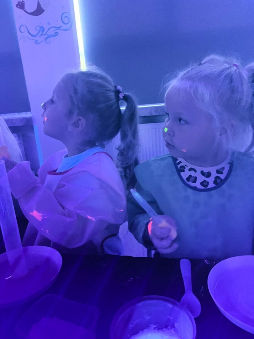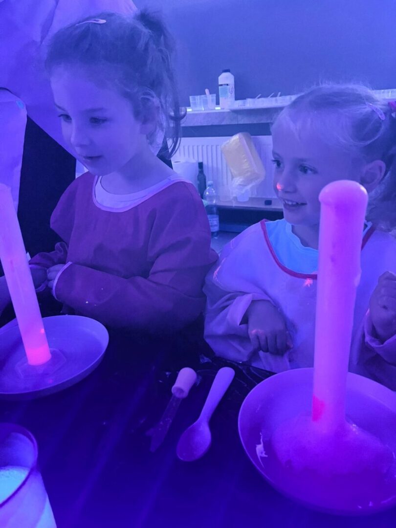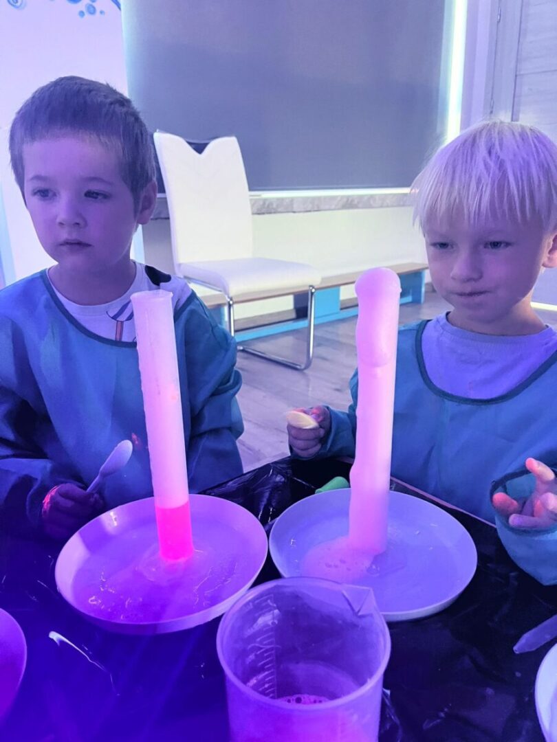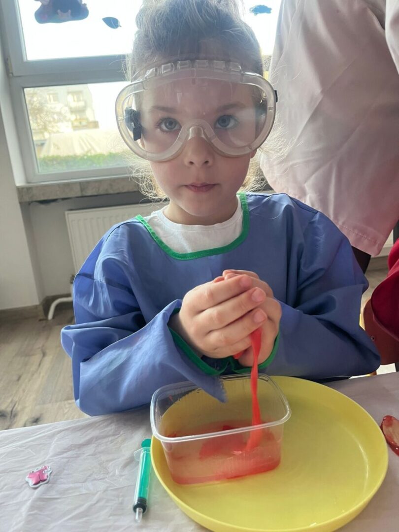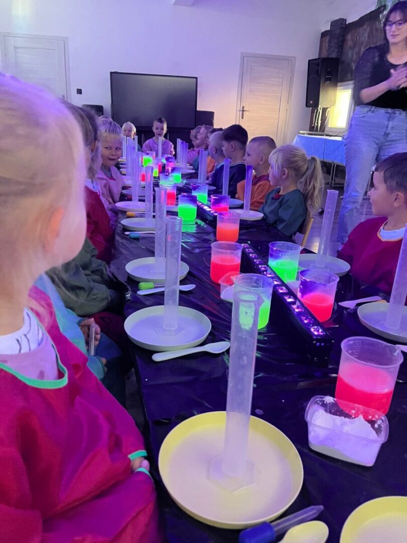 Na pamiątke tych wyjątkowych i zjawiskowych zajęć, dzieci samodzielnie przygotowały sobie slime’a który po „naładowaniu” światłem świeci w ciemności👩🔬🧑🔬