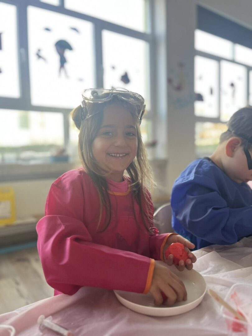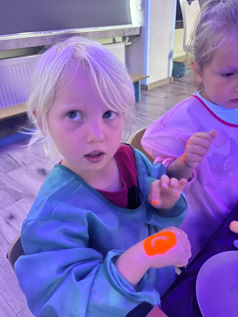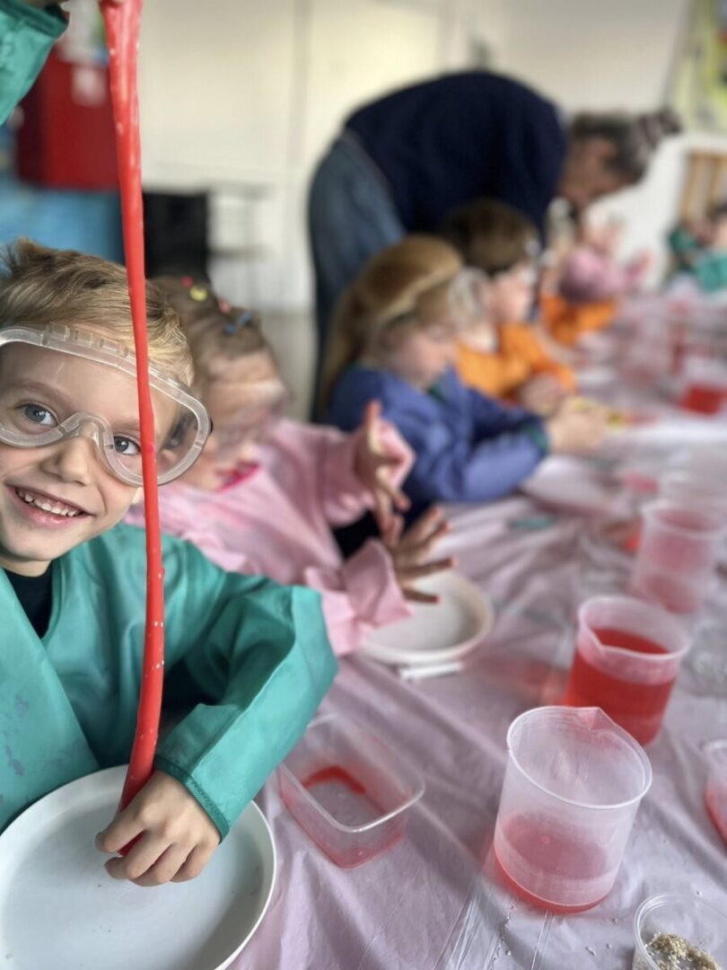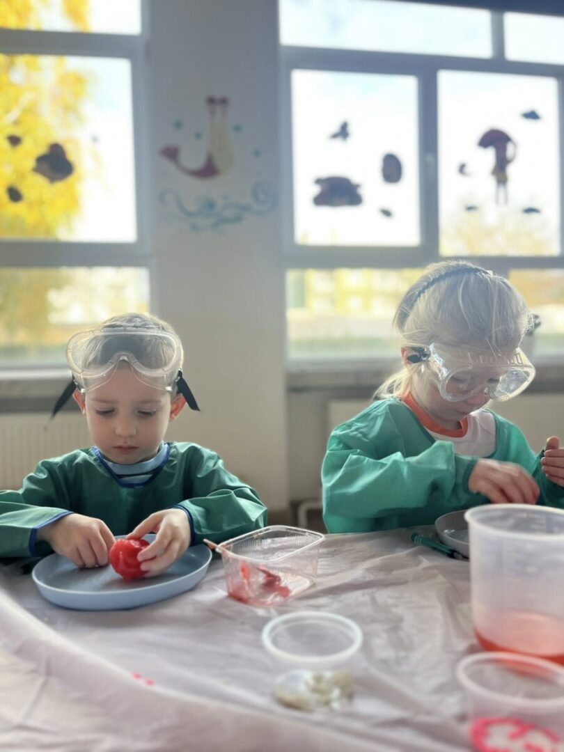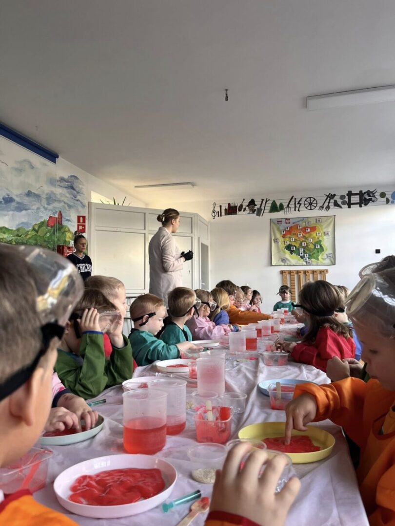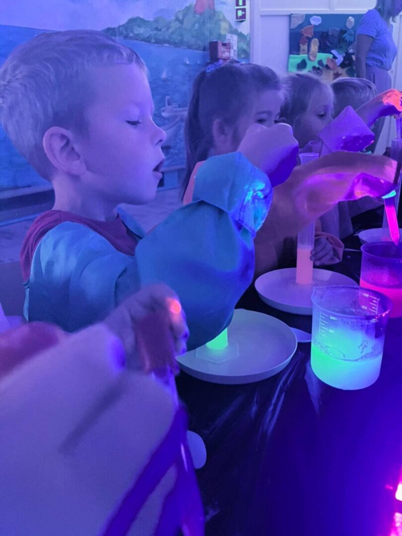 Na pamiątke tych wyjątkowych i zjawiskowych zajęć, dzieci samodzielnie przygotowały sobie slime’a który po „naładowaniu” światłem świeci w ciemności👩🔬🧑🔬
