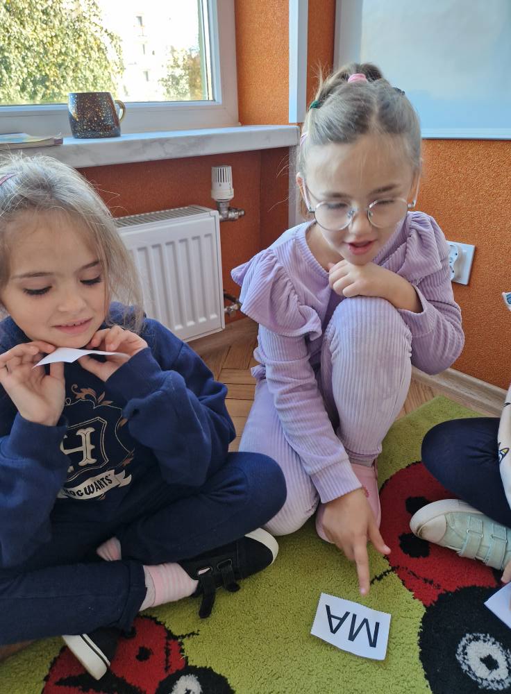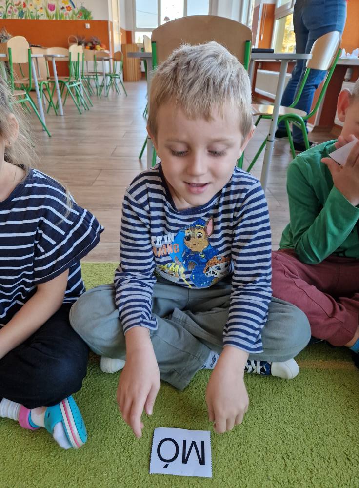 Oglądaliśmy jej kształt, bawiliśmy się z ruchowym alfabetem, wyszukiwaliśmy O na obrazkach i malowaliśmy je na piankach sensorycznych 🎨. Były też zabawy fonetyczne – uczyliśmy się rozpoznawać słowa zaczynające się na głoskę o. Po nauce przyszła pora na jesienne aktywności 🍂: malowaliśmy liście, tworzyliśmy prace plastyczne „Jesienne drzewo”, odbijaliśmy prawdziwe liście na kartkach oraz bawiliśmy się w „jesienny stragan” pełen darów natury 🌰🍎🌽. Rozróżnialiśmy także znaki drogowe- informacyjne i ostrzegawcze 🚸🚦