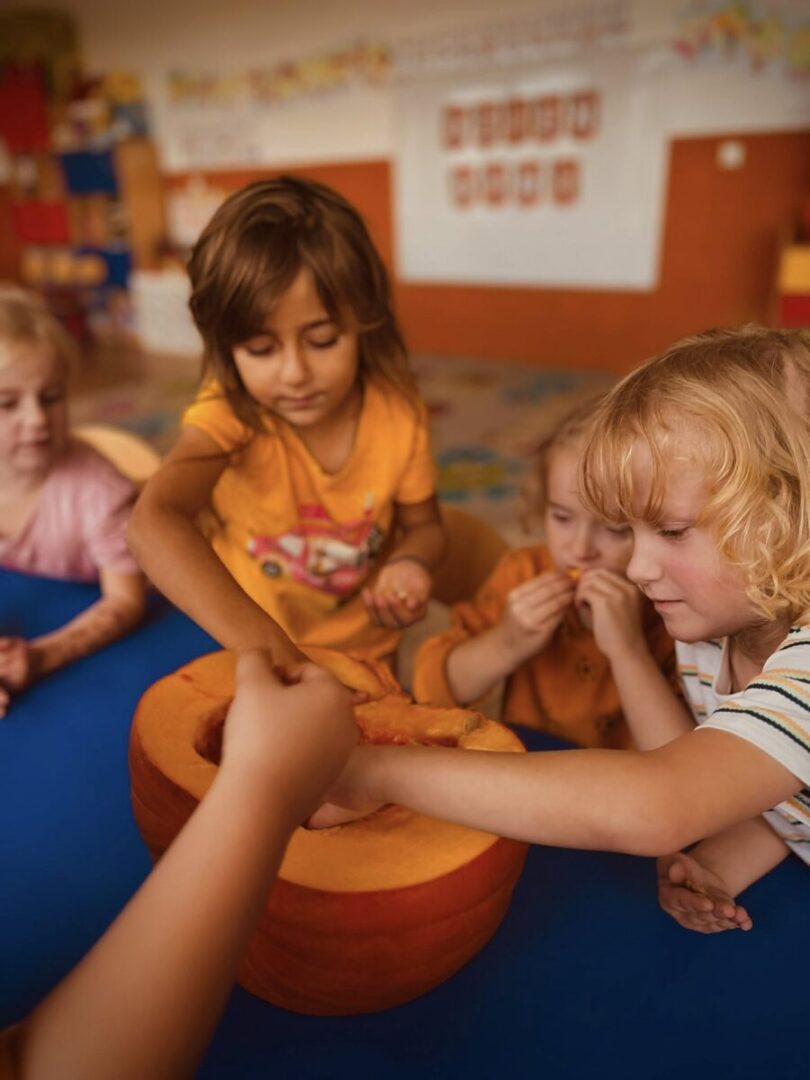 W tym tygodniu dużo rozmawialiśmy o rodzinie. Dzieci opowiadały z czym kojarzy im się słowo rodzina, co najbardziej lubią robić z mamą i tatą. Historie były niezwykle ciekawe, większość tatusiów u nas w grupie chętnie odkurza w domu😉 Poznaliśmy wiersz Wbrew zasadom A. Frączek kształtując świadomość zdrowego odżywiania. Podczas pracy w kartach pracy ćwiczyliśmy umiejętność opisywania fotografii, poprawnego wypowiadania się oraz składaliśmy obrazek z kilku części. W czwartek obchodziliśmy Dzień dyni – podczas którego muchomorki poznawały budowę dyni, rodzaje, właściwości, wypełniały jej kontury, tańczyły oraz wspólnie świętowały podczas poczęstunku ten wyjątkowy czas. W piątek postawiliśmy na zabawy ruchowe, bawiąc się świetnie, budując relacje koleżeńskie i kondycje fizyczną.