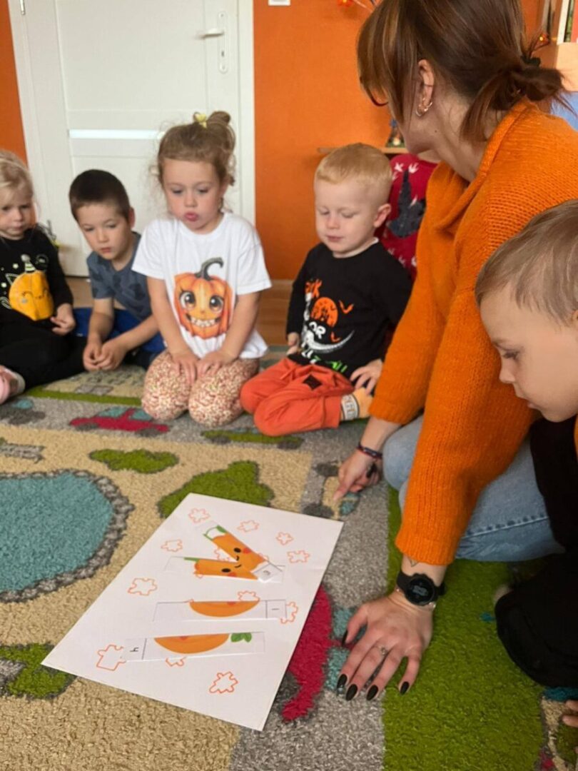 Dzisiejszy dzień minął nam w pięknym, pomarańczowym klimacie – wszyscy ubraliśmy się w barwy dyni, aby wspólnie świętować to radosne, jesienne święto 🍂🧡 W naszej sali postawiliśmy na pracę w grupach 👧🧒👦 Dzieci uczyły się zgodnej współpracy, dzielenia zadaniami oraz wzajemnego wspierania się 🤝💛 Dla każdej grupy przygotowaliśmy 6 stanowisk z dyniowymi zadaniami 🎨🧩🧠 Na dzieci czekały różne wyzwania — układanki, zadania logiczne i kreatywne aktywności związane z dynią 🎃✨ Aby zdobyć nagrodę, każda grupa musiała przejść wszystkie przygotowane zadania 💪🥇 Było dużo skupienia, radości, współdziałania oraz ogrom satysfakcji z wykonanej pracy! 🌟 Brawo dla naszych małych odkrywców i współpracowników! 👏☺️💛