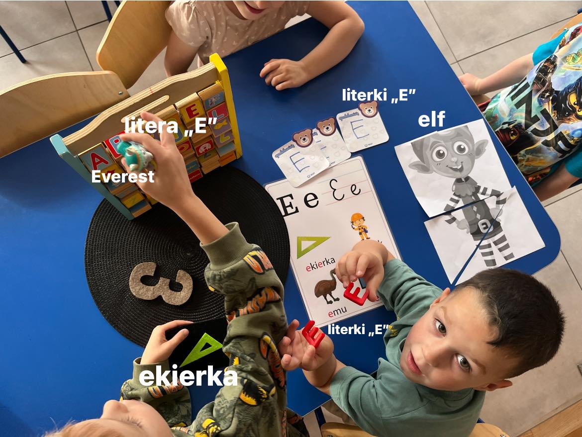 Podczas pierwszego bloku tematycznego odkrywaliśmy zakamarki naszej wyobraźni 💫 Na podstawie wiersza „Na wyspach Bergamutach” staraliśmy się odróżnić fikcję od rzeczywistości oraz zastanawialiśmy się jak działa nasza wyobraźnia. Zapoznaliśmy się z literką „E” jak Elf, cyfrą 4 oraz w zabawach wyszukiwawczych utrwalaliśmy wcześniej poznany materiał 🔠. Braliśmy także udział w uroczystej akademii z okazji Dnia Patrona. Przedszkolaki z wielką odwagą zaprezentowały poznane przez nas utwory takie jak: „Jak rozmawiać trzeba z psem”, „Na straganie” oraz wcześniej omawiane przez nas „Na wyspach Bergmutach” W kolejnym tygodniu zajrzeliśmy do Rodzinnych Albumów. Razem z dziećmi omówiliśmy pojęcie „drzewo genealogiczne” oraz podjęliśmy próbę jego wykonania przypominajc sobie stopnie pokrewieństwa w rodzinie. Poruszyliśmy także temat tęsknoty. Poprzez burzę mózgów zastanawialiśmy jakie są sposoby aby sobie z nią poradzić. Poznaliśmy kolejną Literkę- „I” jak Igła oraz cyfrę 5. A na koniec tygodnia zrobiliśmy mini zajęcia kulinarne🧑🍳